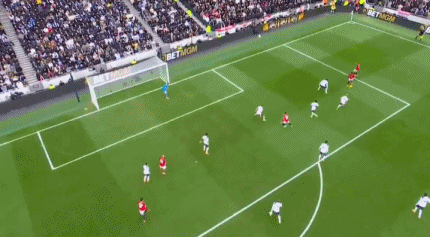 第32分鐘,熱刺後防線一片混亂,迪亞洛禁區(qū)右側(cè)傳中,姆伯莫後點甩頭攻門直掛死角,維卡裡奧鞭長莫及,曼聯(lián)打破僵局,1-0!