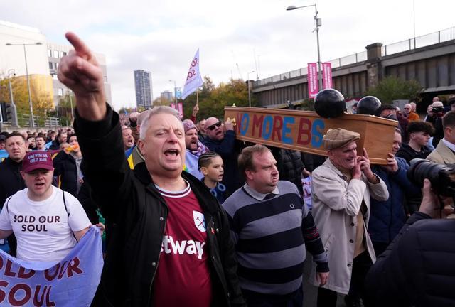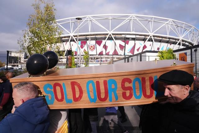 太陽報:西漢姆球迷抬著棺材遊行,抗議俱樂部管理層