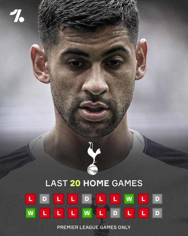 英超第11輪,熱刺主場2-2戰(zhàn)平曼聯(lián),至此,熱刺最近20場英超隻取得3場勝利。