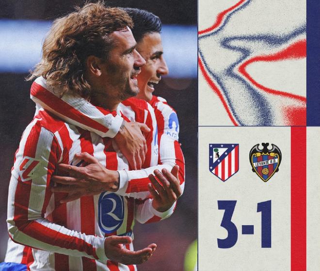 主場(chǎng)面對(duì)萊萬(wàn)特,馬競(jìng)上半場(chǎng)開局不錯(cuò),依靠一個(gè)烏龍球先下一城,隨後馬努-桑切斯頭球破舊主,比分1-1扳平。下半場(chǎng),替補(bǔ)出戰(zhàn)的格列茲曼短短19分鐘完成梅開二度,幫助馬競(jìng)3-1再度領(lǐng)先,這個(gè)比分也保持到比賽結(jié)束。據(jù)統(tǒng)計(jì),格列茲曼已在西甲聯(lián)賽打進(jìn)201球,成為歷史第11人。