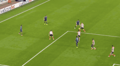 接下來的10分鐘,場面有些膠著,但場上的天平在第36分鐘發(fā)生變化,桑德蘭利用簡單的長傳沖吊破門得分。
