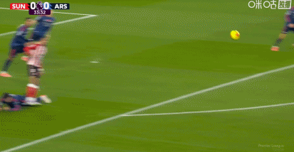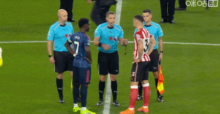 第34分鐘,紮卡被判犯規(guī),隨後欲找倒地的梅裡諾理論