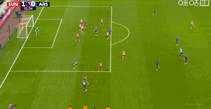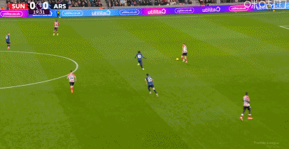 第53分鐘,蘇比門迪做球,薩卡跟進(jìn)打門偏出