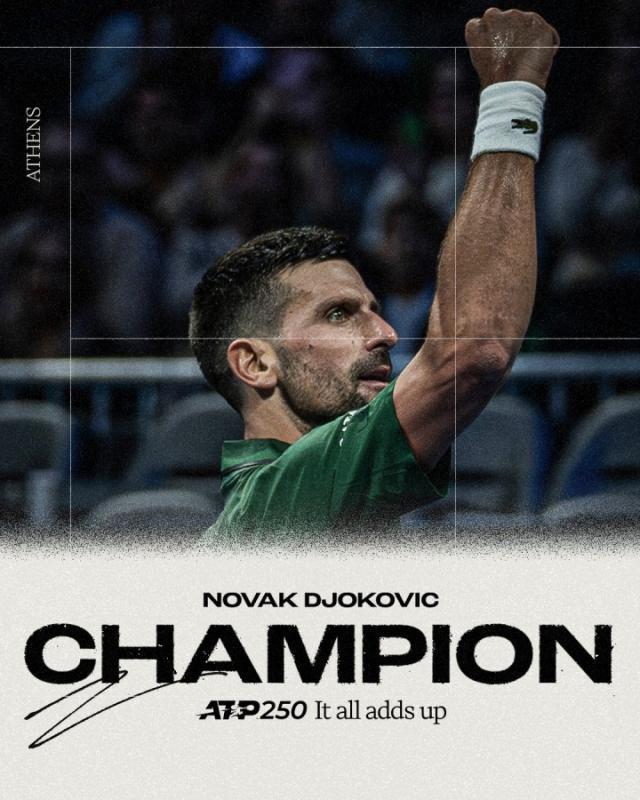 ATP250雅典站決賽,頭號種子德約科維奇兌現(xiàn)第二個發(fā)球勝賽局,以4比6、6比3、7比5逆轉二號種子穆塞蒂,對其取得6連勝,斬獲本賽季第2座、職業(yè)生涯第101座巡回賽男單冠軍。