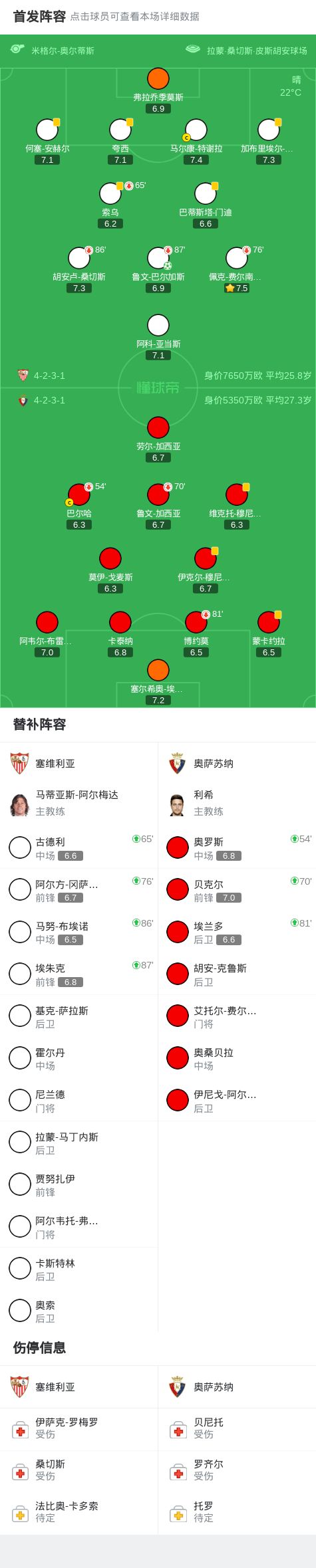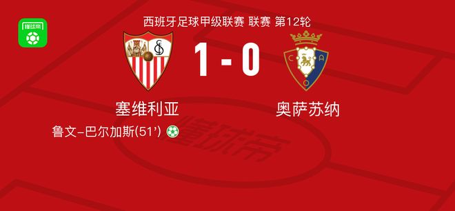 塞維利亞1-0奧薩蘇納,魯文-巴爾加斯點(diǎn)射制勝