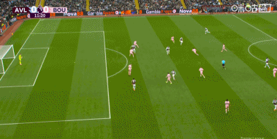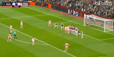 第28分鐘,正反手教學,佈恩迪亞位置相近的任意球直接破門,維拉1-0