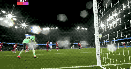 雖然哈蘭德的點球力量足夠,球速也相當快,但沒能打出角球,瑪瑪達什維利奮力將球撲出,怒吼宣泄。