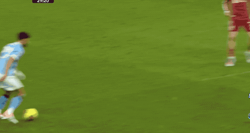 VAR介入,慢動作可以看出瑪瑪達什維利放倒瞭多庫,裁判判罰點球,哈蘭德操刀。