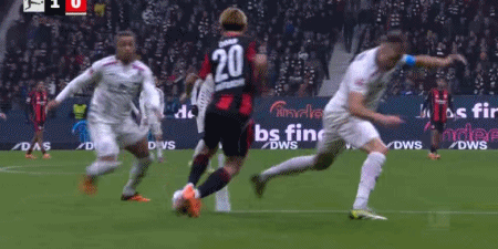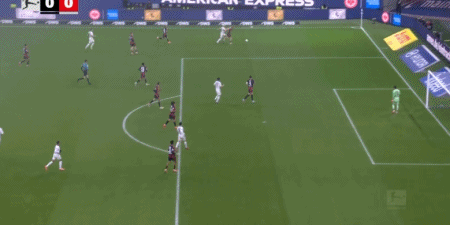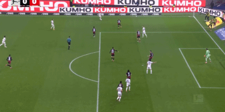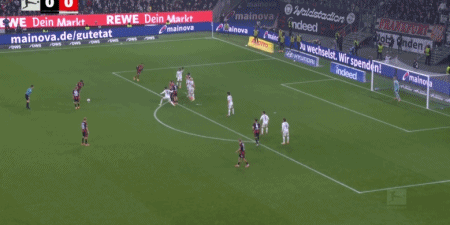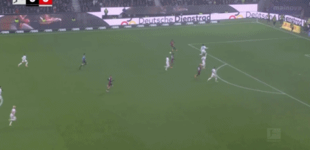 第80分鐘,堂安律右路突破兩人防守,小角度推射破門,法蘭克福1-0
