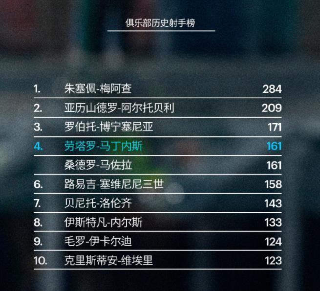 本場比賽的進(jìn)球,也讓勞塔羅的藍(lán)黑軍團(tuán)生涯進(jìn)球總數(shù)來到161球,國米隊(duì)長與藍(lán)黑名宿馬佐拉一起,目前並列位居國米隊(duì)史第四射手的寶座。這位阿根廷射手,正用一個(gè)個(gè)進(jìn)球,一步步將自己鑄就成為俱樂部的活傳奇。