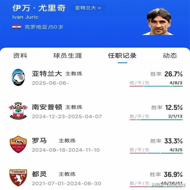 尤裡奇在羅馬隻待瞭53天,在南安普頓待瞭106天,如果從六月份官宣之日算起,在亞特蘭大待瞭157天。從熱那亞時期的兩年三次下課,變成如今的一年三次下課,尤裡奇執(zhí)教生涯的故事實在太多瞭,不知道將來,他會去哪裡?