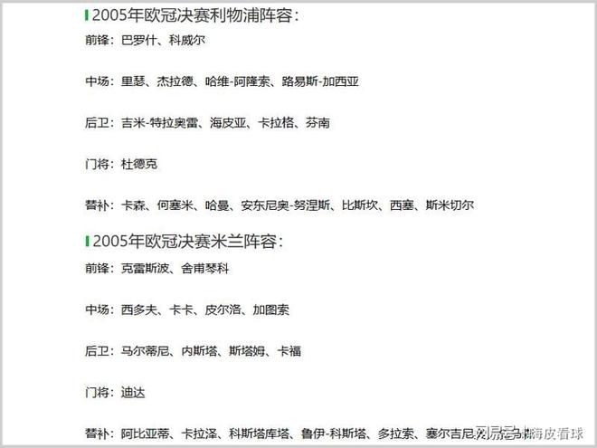 看著當時雙方的首發(fā)和替補,包括現(xiàn)任皇馬主帥阿隆索,現(xiàn)任意大利主帥加圖索,傳奇射手舍甫琴科,傳奇隊長馬爾蒂尼,還有杰拉德、卡拉格、卡卡、皮爾洛、內(nèi)斯塔、卡福、斯塔姆等一眾知名球星。隨著當時相當年輕的卡森宣布掛靴,利物浦在伊斯坦布爾創(chuàng)造奇跡的兩隊所有見證者,已經(jīng)全部退役。