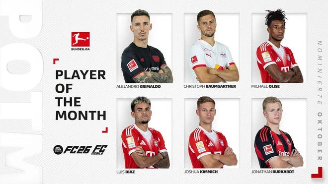 北京時(shí)間10月29日,德甲官方公布了10月最佳球員的候選名單,其中格里馬爾、奧利塞、路易斯-迪亞斯、基米希等人在列。